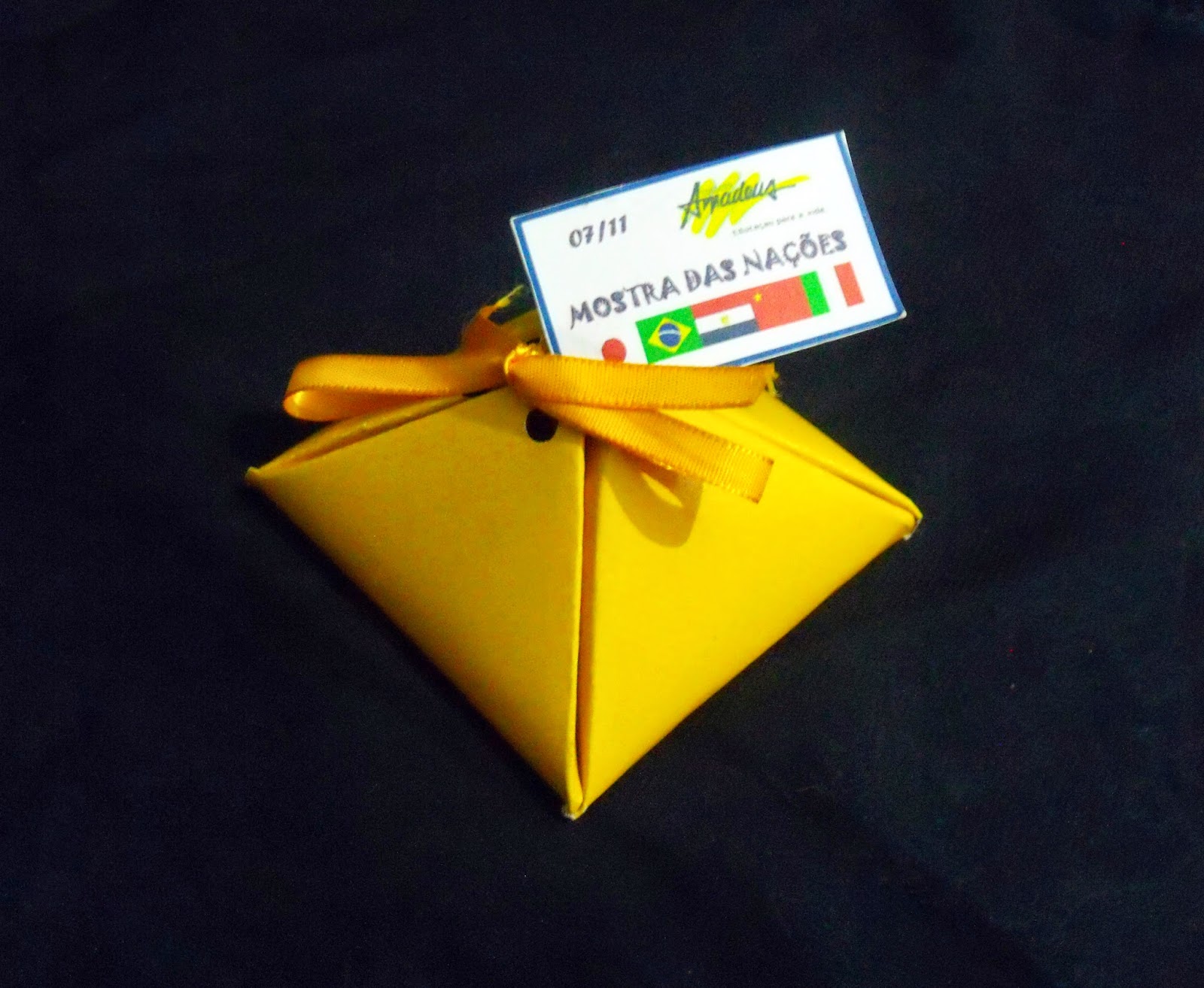 Esta caixinha imitando uma pirâmide foi o brinde dos visitantes (o que foi o meu caso). Dentro veio um chocolate: