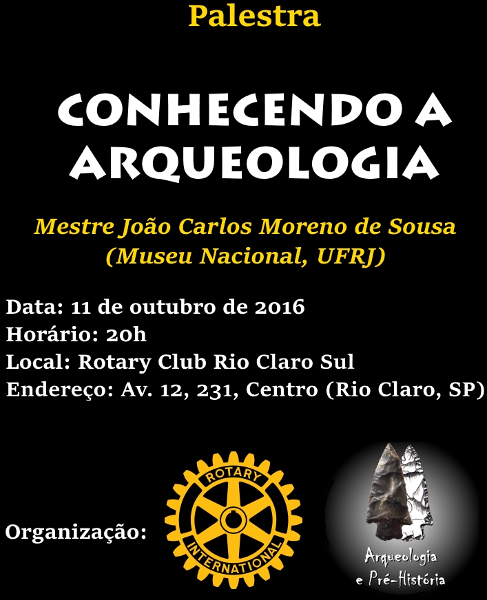 O arqueólogo João Carlos Moreno de Sousa dará uma palestra intitulada “Conhecendo a Arqueologia” na próxima terça-feira, 11 de outubro. A atividade tem como objetivo introduzir o público à Arqueologia, apresentando sítios arqueológicos, artefatos, a importância desta ciência e como as pesquisas são realizadas.