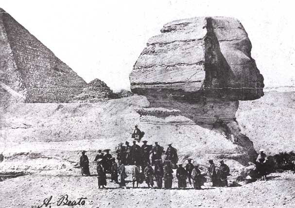 Ikeda Nagaoki foi um governador que viveu durante os anos finais do xogunato Tokugawa e recebeu a ordem de realizar uma viagem diplomática para a Europa. Aproveitando a sua escala no Egito tirou uma foto com os seus 36 subordinados em frente as pirâmides. Este momento histórico foi registrado por Antonio Beato.