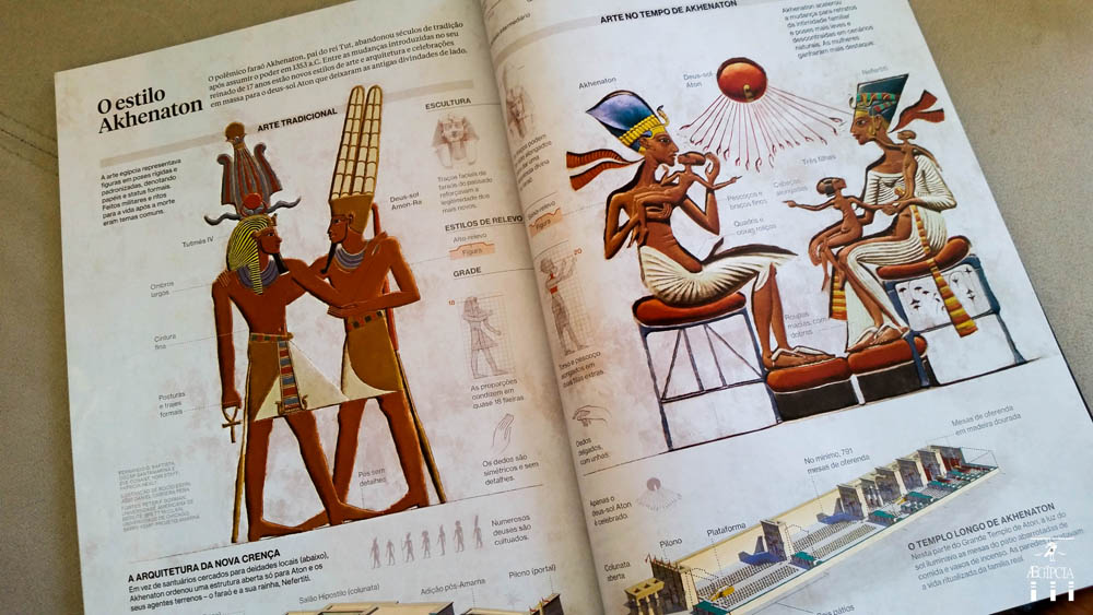 Fundada por Akhenaton, Aketaton foi a primeira cidade planejada do Egito e estima-se que no seu auge abrigou cerca de 30 mil pessoas. O faraó a criou para que além de nova capital do país ela se tornasse um local de paz e harmonia e era isso o que ele descrevia em seus textos. Contudo, a realidade apresentada pela arqueologia feita na região mostrou um quadro bastante diferente: enquanto a elite vivia em pleno luxo, a população comum sofria com os trabalhos pesados e a má alimentação. É isto o que o texto “Akhenaton: o primeiro revolucionário do Egito”, publicado pela revista National Geographic de maio (2017) nos traz.