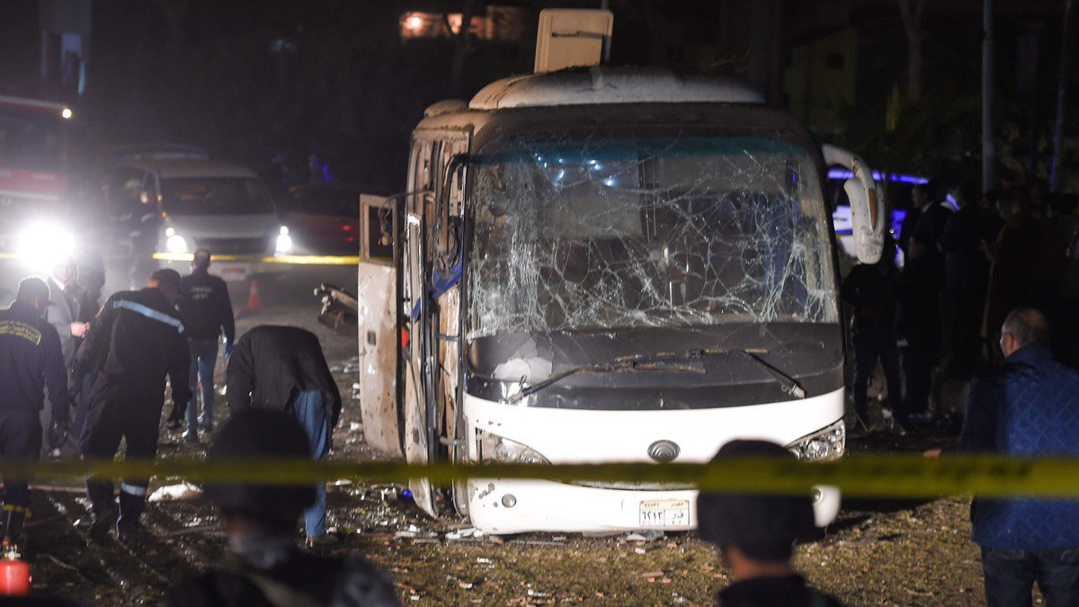 Na noite de sexta-feira (28/12/2018), um dispositivo explosivo improvisado (DEI) foi detonado quando um ônibus que transportava turistas passou por Gizé, no Egito. A explosão matou quatro pessoas e feriu 11 outras.