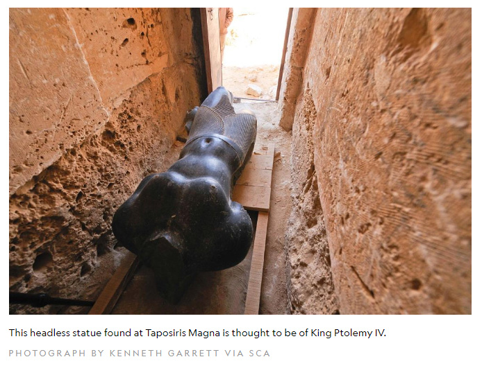 Corpo de estátua que se acredita ser do rei Ptolomeu IV, parente de Cleópatra VII. Foto: Crédito na imagem.